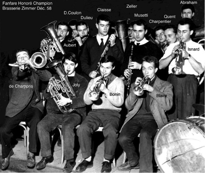 C'est l'histoire de la petite fanfare qui vient se glisser entre deux grosses fanfares. Honoré Champion est née dans l'atelier Leconte, atelier interne à l'Ecole, à l'ombre de la Fanfare Léon Malaquais qui faisait figure de Maître en la matière. De l'autre coté, bien loin, un fossé énorme séparant la rue Bonaparte de la rue Jacques Callot (mais surtout les ateliers intérieurs des ateliers extérieurs), œuvrait la Fanfare de l'Atelier Madelin, bientôt dénommée Octave Callot. Et puis, quelque fois, le petit damne le pion au grand et c'est ainsi qu'en 1958, lors du premier concours des fanfares qui désignait la fanfare qui allait jouer au Gala de l'Ecole, Honoré Champion gagna devant Malaquais dont on est pas sûr aujourd'hui qu'il en soit encore remis! Et comme cela ne suffisait pas, avec à peine dix mois d'existence, Honoré Champion se permettait de sortir son disque trois jours avant le nouveau disque très attendu de Malaquais. On pourrait presque parler d'un crime de lèse-majesté. L'histoire fera que les choses rentreront dans l'ordre, qu'Honoré Champion (Louis-René Blaire) lui-même fera signe d'allégeance en intégrant la "grande" Fanfare Malaquais avec quelques-uns de ces petits camarades dès la fin des années 50. Mais cela est une autre histoire.