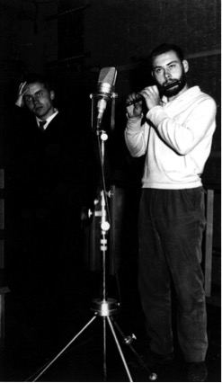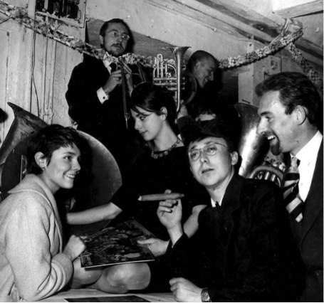 « Ces disques sortirent donc début 61(8), soit un an et demi après leur enregistrement. Leur sortie fut l’objet d’une petite fête destinée à les promouvoir, à la Maison des Beaux-Arts(9), avec la complicité amicale de François Gire, alors directeur de la fameuse Maison ; une affiche avait été créée par Gil Basso pour la circonstance, ainsi qu’une carte d’Amédée(10). On joua encore, au milieu des libations de rigueur... » (Blaire)