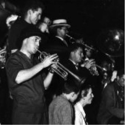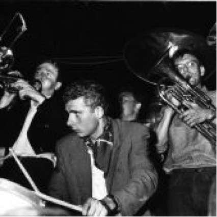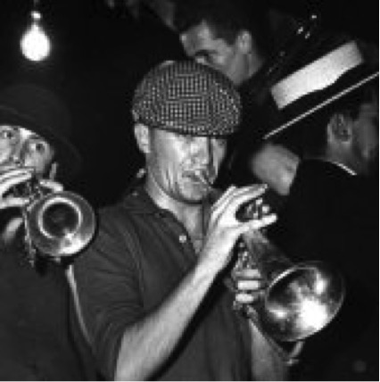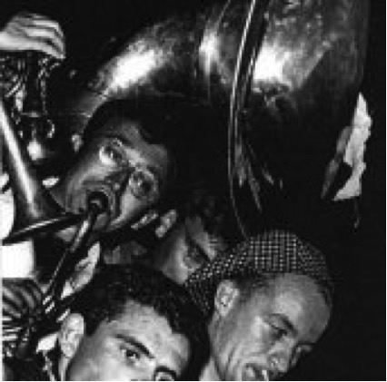 La fanfare Léon Malaquais au bal du 14 juillet 1958 organisé devant chez Malafosse, quai Malaquais, quelques mois après l'enregistrement de ce disque.