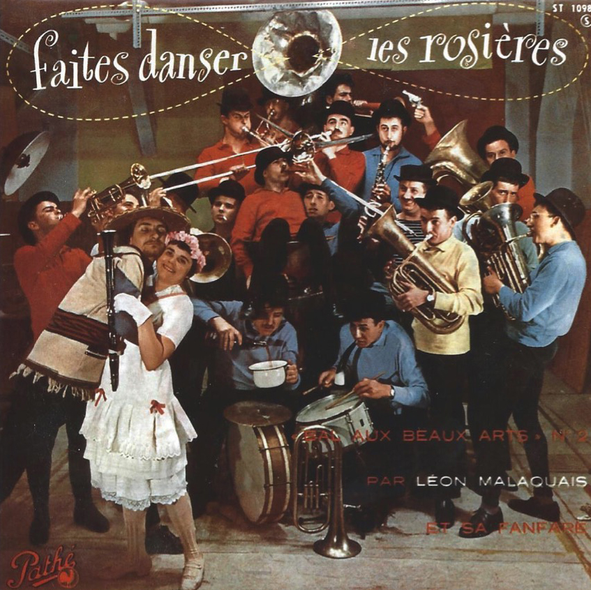 « Malgré l’affection que je garde à notre vieille Fanfare Léon Malaquais, et l’admiration que je lui portais, notamment en 1958, l’objectivité la plus élémentaire m’oblige à dire que le 33T « Faites danser les Rosières » et le 45T « Le Pont de la Rivière Kwai » enregistrés en mai 58 sont les moins bons de tous les enregistrements enregistrés par cette célèbre fanfare, et ne reflètent en rien le niveau musical et la pêche qui avaient tant frappé les mélomanes de l’Ecole à cette époque. Rappelons que la Fanfare, principalement composée à l’époque de membres de l’atéyé Beaudouin, ne comportait que deux mercenaires et pas n’importe lesquels, en la personne de Jeff Leleu (Yapakloss Kikouliss) et Raymond Caubel (Yapakliss Kikouloss). C’est juste après cet enregistrement que furent appelés sous les drapeaux Trifloquet, Laridelle et Yapakloss… Autant dire que cette absence serait importante pour la fanfare, quand on se rappelle que le service durait environ 28 mois, dont une bonne partie à risquer sa peau de l’autre côté de la Méditerranée.