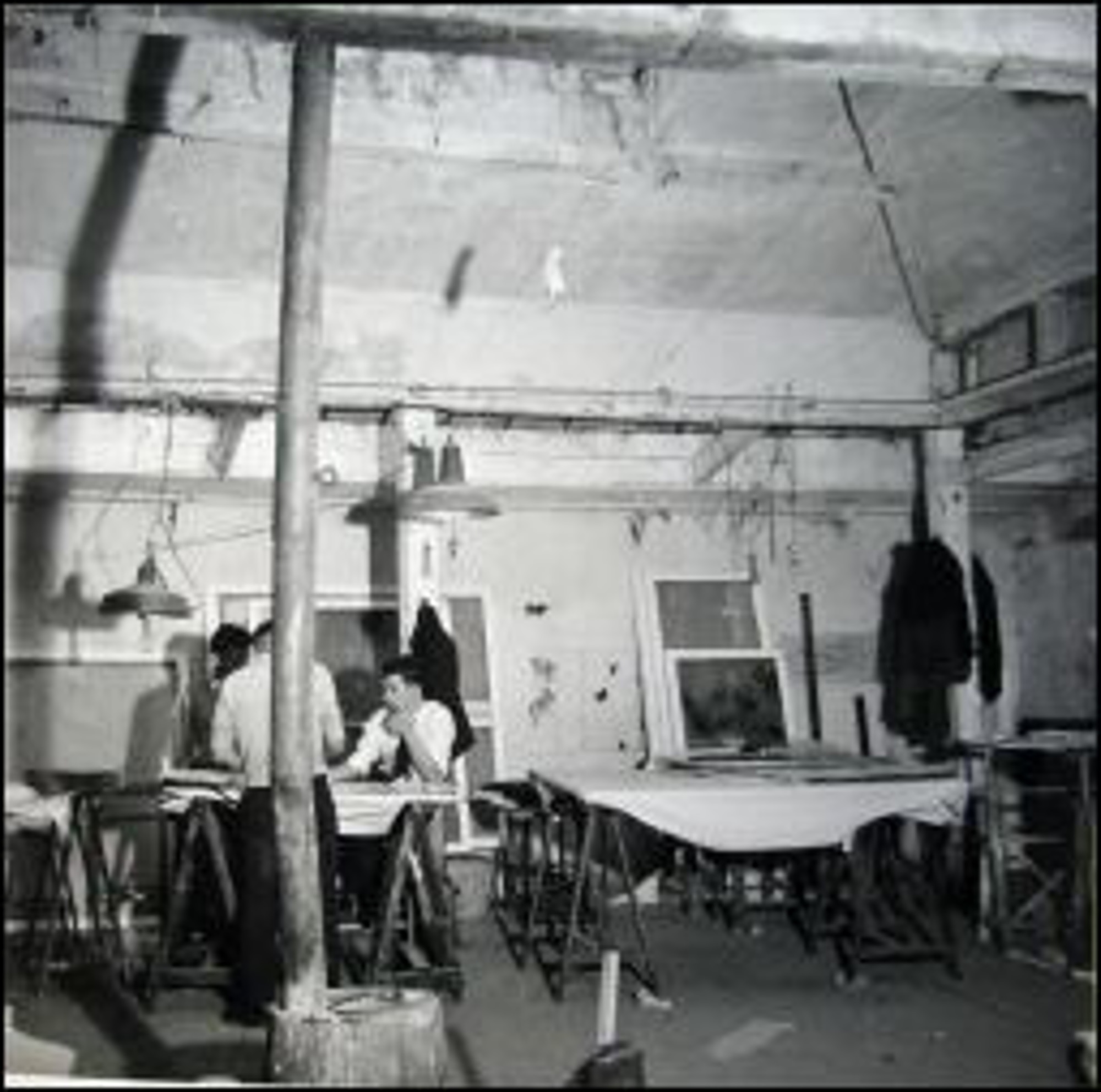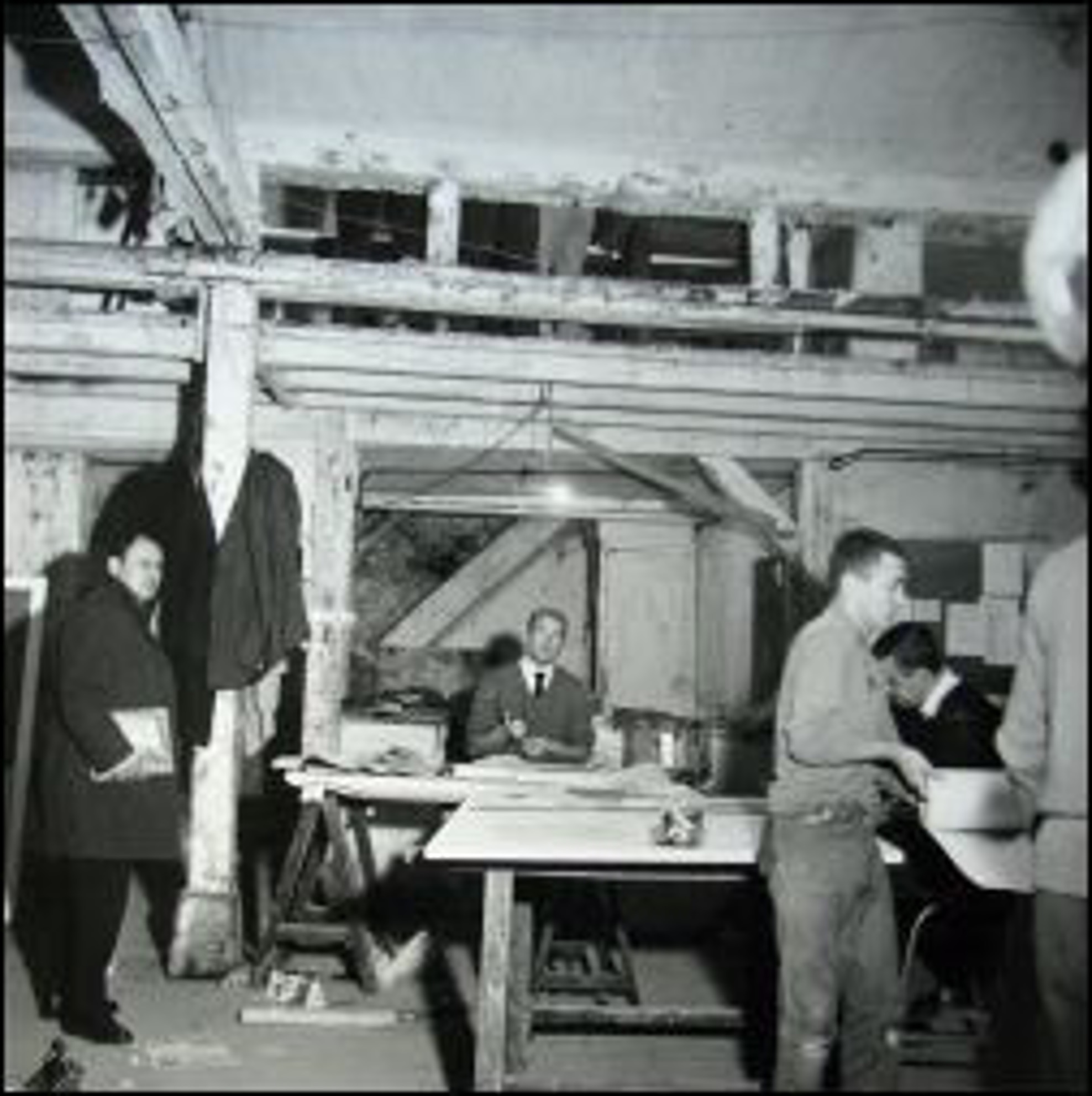 Ce disque est une première car enregistré en public lors d'une fête d'atelier. L'Atelier La Mache dont l'histoire nous est racontée par Samoyault sur ce même site(1), était installé depuis 1929 au 13 rue Visconti, dans des locaux vétustes appartenant à la Ville de Paris. "...Les autres bâtiments de la parcelle sont presque tous des taudis, dans un état "de totale insalubrité". Il y a notamment des constructions dans la cour uniquement en rez-de-chaussée occupées par les Beaux-Arts... C'est Othello ZAVARONI(2) qui, le premier, signe le 10 juillet 1947 avec la ville de Paris l'engagement de location qui lui permet d'installer un atelier dans ces locaux. A cette époque, la vielle porte cochère du 13 étant condamnée, l'entrée dans les bâtiments s'effectue par le 15. Cet atelier, qui deviendra le célèbre atelier La Mache, accueille jusqu'à 150 élèves architectes qui y travaillent jour et nuit et très bruyamment (au clairon ou au piano mécanique) jusqu'à exaspérer les riverains qui finiront par porter plainte en 1957.