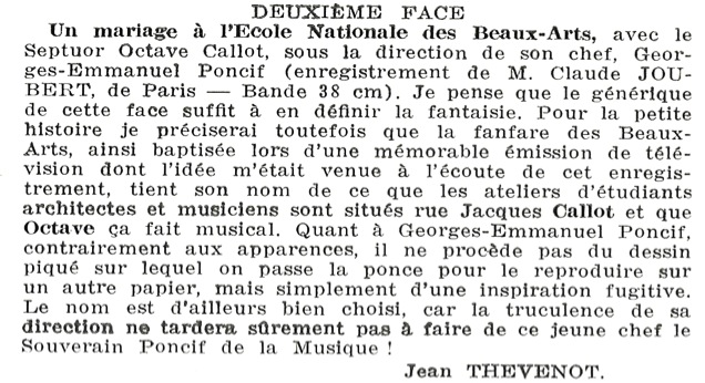 Introduction de Jean THEVENOT(1) à la face B du disque « Chasseurs de son ».