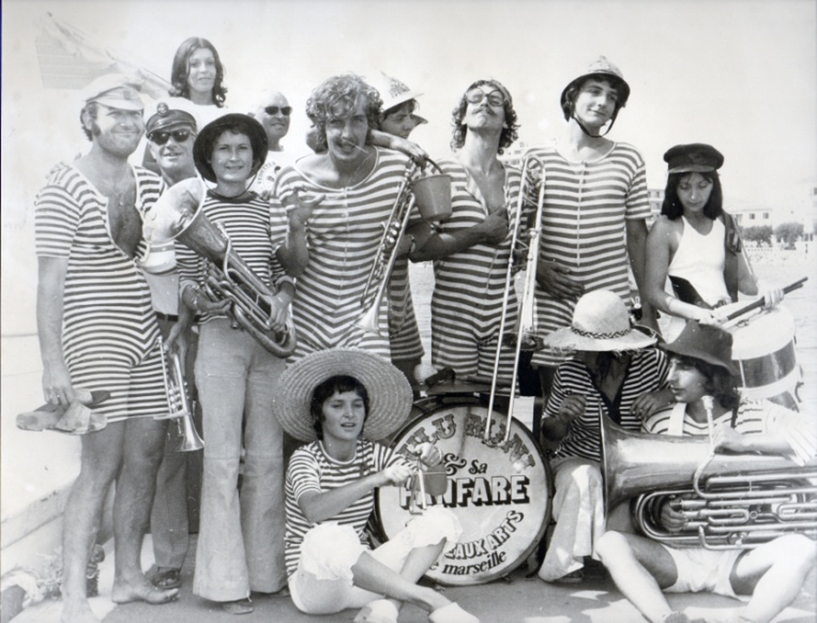 Plusieurs nouvôs attirés par la mélodie de mes exercices m’ont rejoint et devant l’impérieuse nécessité de leur trouver des instruments, le Directeur de l’École, François BRET me fit un don afin d’acheter le matériel de la Clique de Saint Henri (banlieue Nord de Marseille) qui cessait son activité. Paul RICARD appelé comme mécène, nous permit d’acheter le stock de maillots de bain 1900 au costumier le l’Opéra de Marseille.