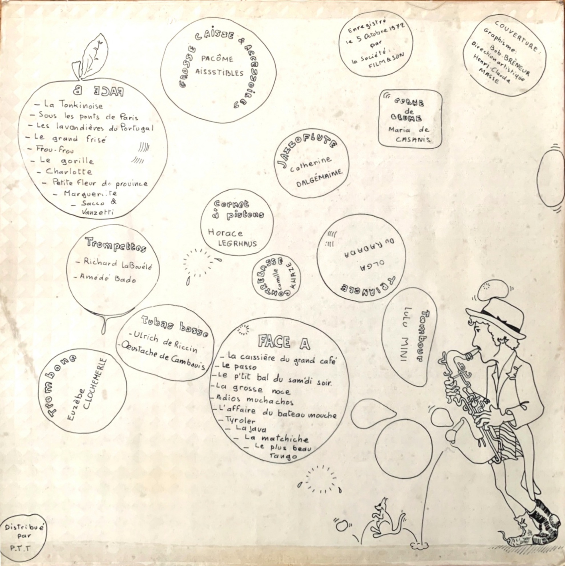Le disque sort donc en 1972, c’est un microsillon de 30cm, 33 tours et porte le titre de « Lulu Mini & sa Fanfare des Beaux-Arts de Marseille ».