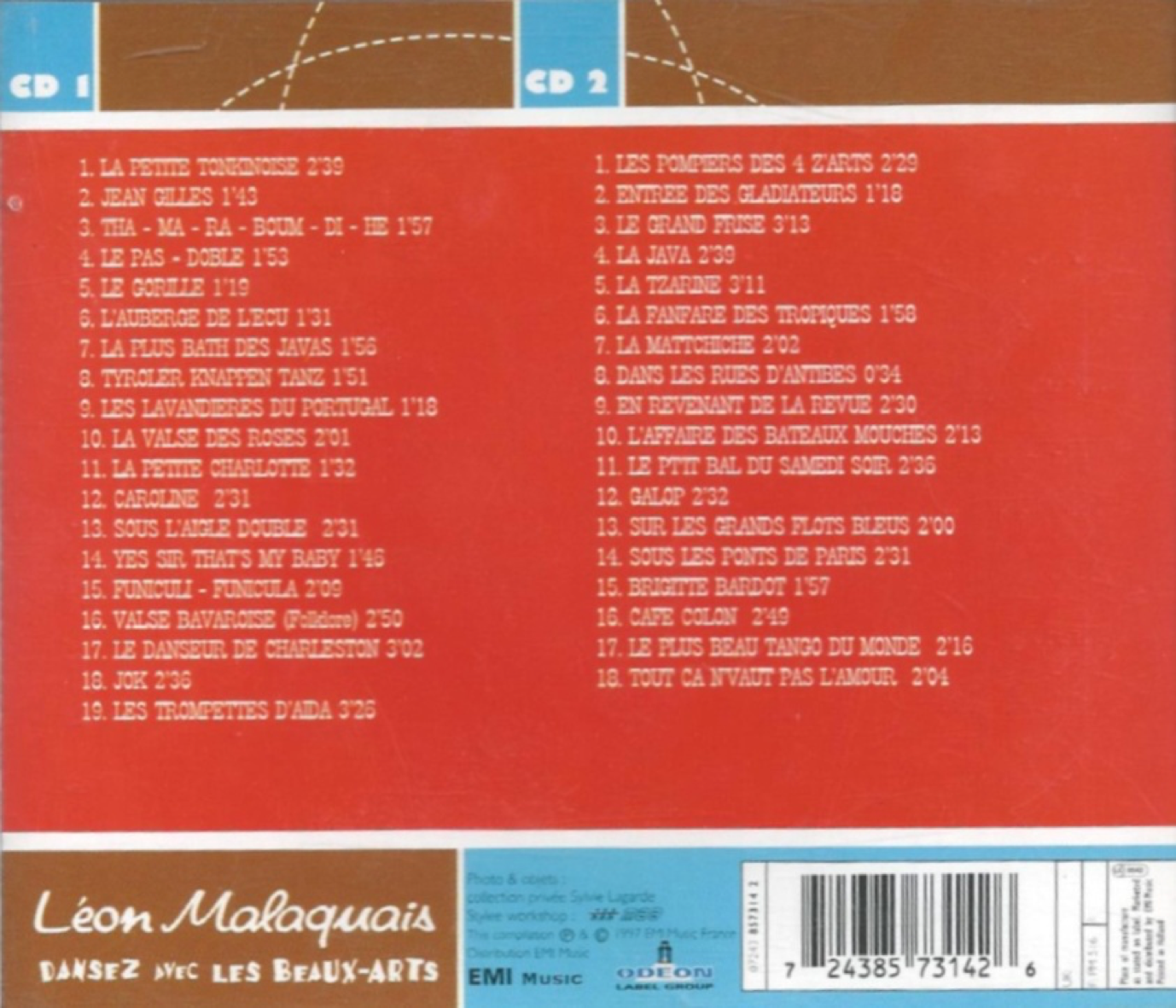 Les morceaux joués dans le CD n°5 par Léon Malaquais sont issus du 25cm: ST 1080 - "Bal aux Beaux-Arts". |