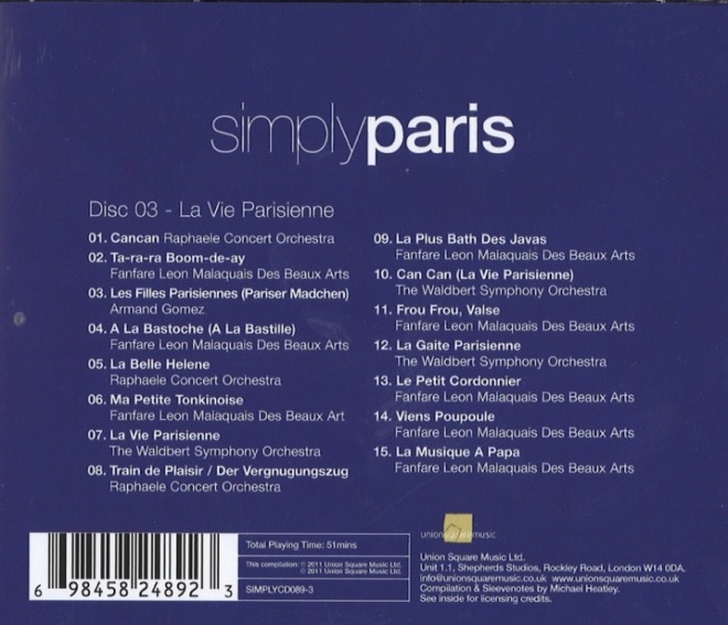 RAPHAELE CONCERT ORCHESTRA Cancan, La Belle Helene, Train de Plaisir THE WALDBERT SYMPHONY ORCHESTRA La Vie Parisienne, Can Can, La Gaité Parisienne ARMAND GOMEZ Les Filles Parisiennes |