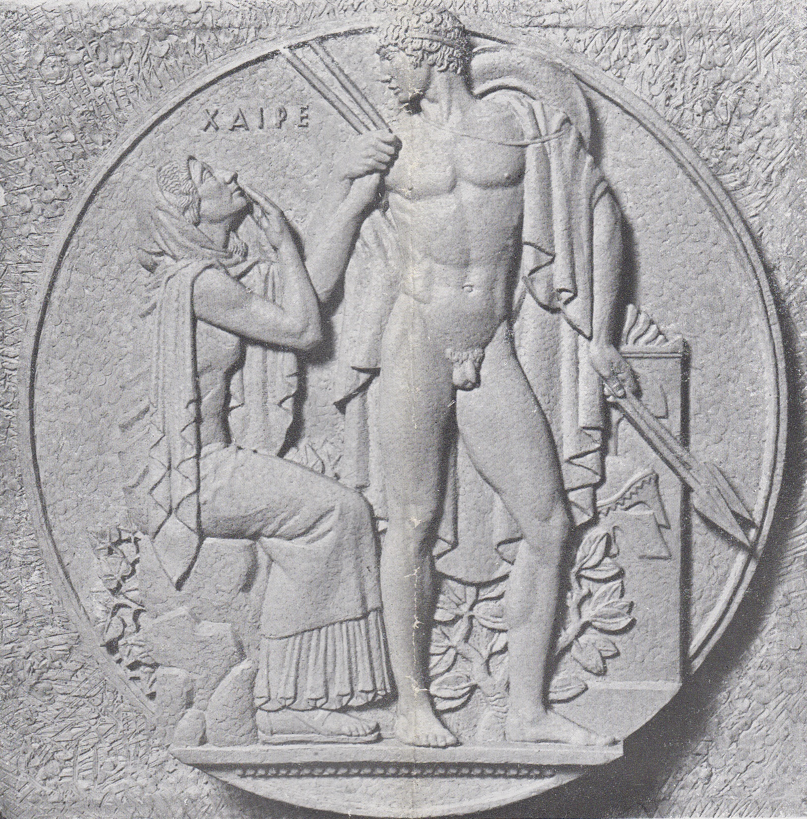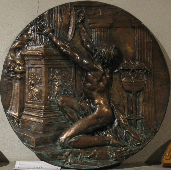 1872 | Sujet : « Soldat spartiate préparant ses armes avant la bataille des Thermopyles ». | ||