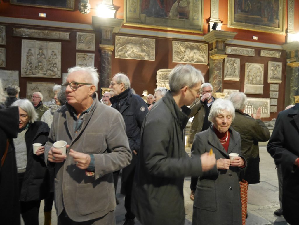 Après la cérémonie, toutes et tous se sont retrouvés pour le pot de l’Amitié dans la Chapelle de l’École mise à disposition par Monsieur Éric de Chassey.